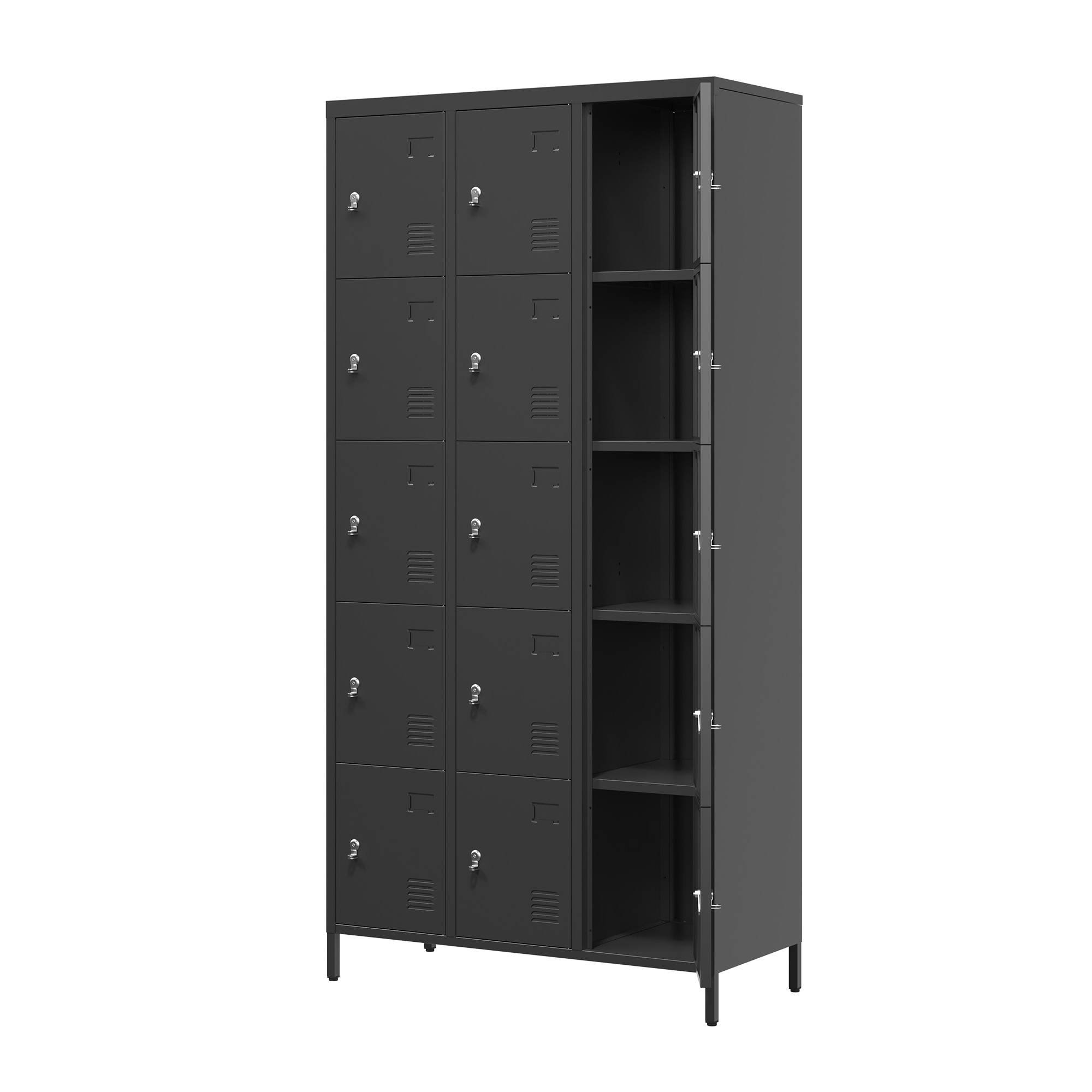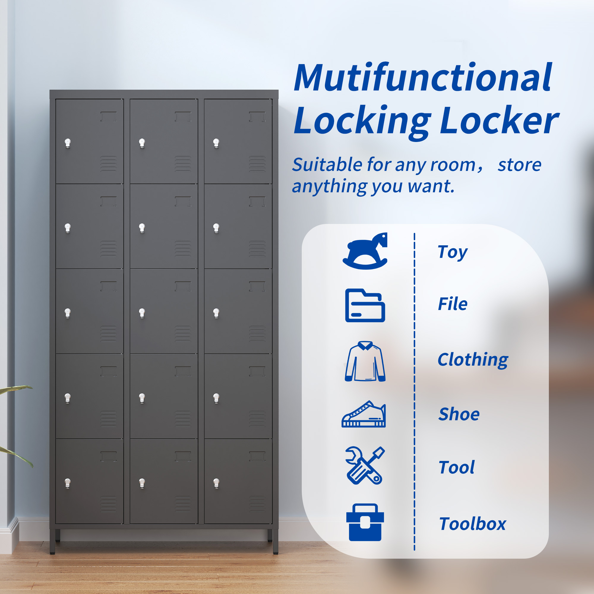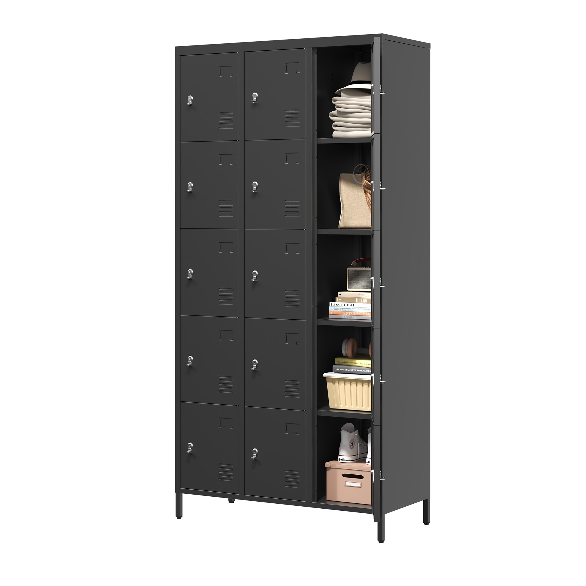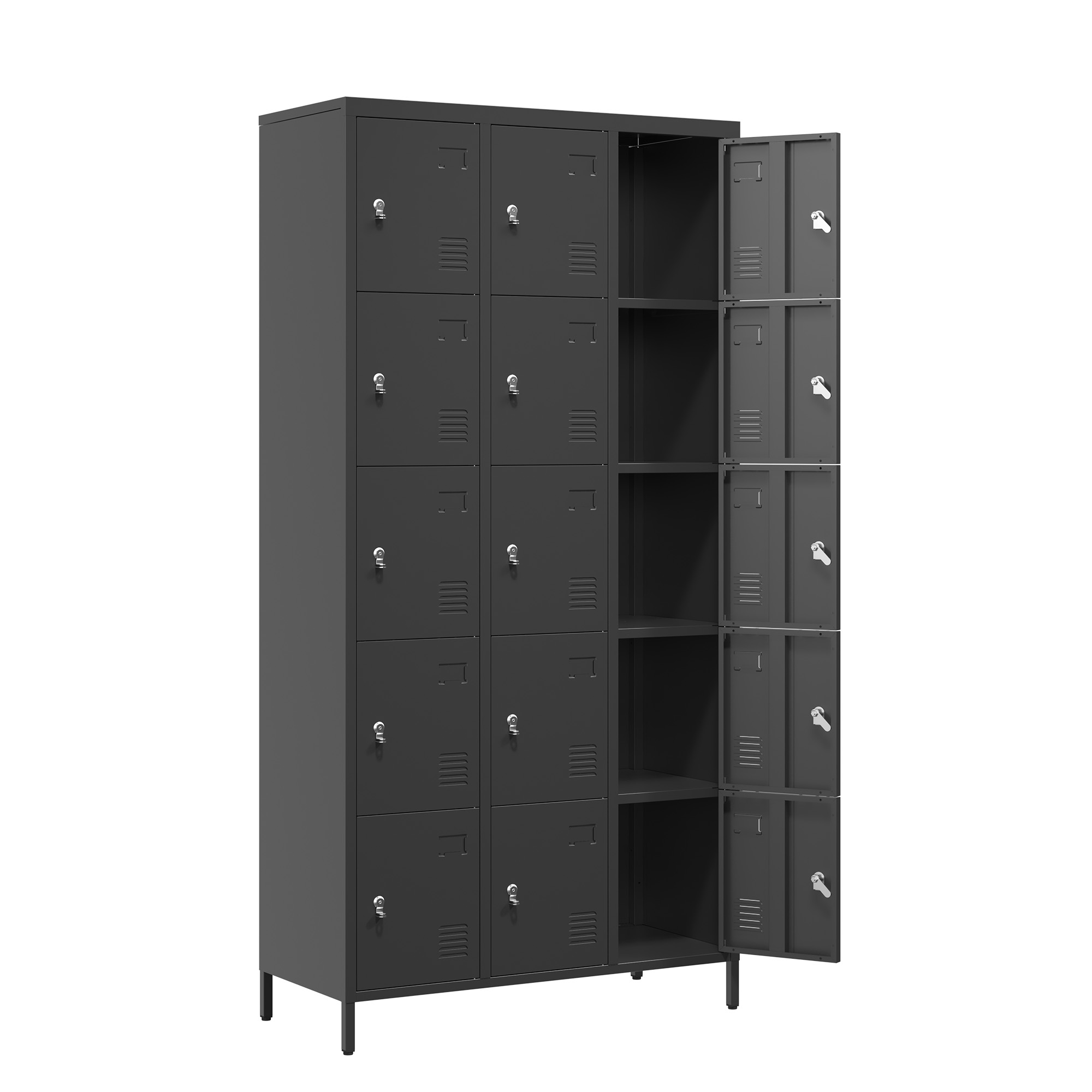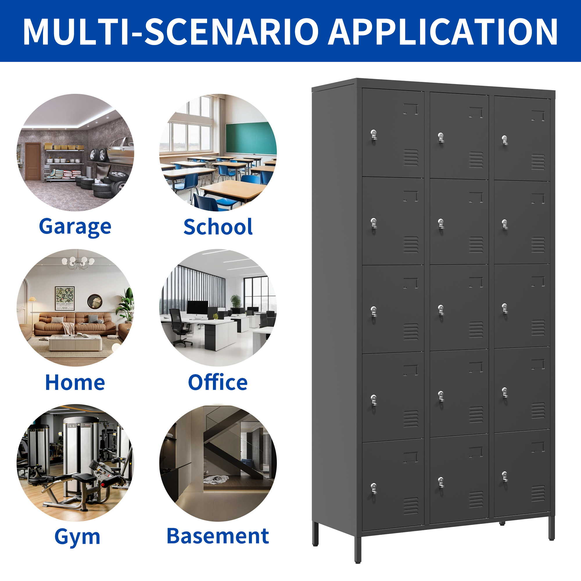 15 Door Metal Lockers With Lock For Employees,Storage Locker Cabinet For Home Gym Office School Garage,Easy Assembly,Black